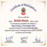 Rachika R Sharma is an Astrologer, Numerologist, Palm reader, lal kitab, Vastu shastra expert. She has successfully completed courses like Jyotish Praveen, Jyotish Ratan, Jyotish Bhushan, Jyotish Visharad, Lal Kitab, Numerology, Vastu, Palm reading from ICAS (Indian Council of Astrological Sciences) and AIFAS (All India Federation of Astrologers Socities) and doing research in Astrology. Also Topped in astrology all over Delhi. Recognized for a strong and excellent academic background with MBA, MCA and M. Com with excellent interpersonal and communication skills with demonstrated abilities in customer relationship management. Prepare horoscope by computing position of planets, their relationship to each other and to zodiac signs, based on factors, like time place person was born. And detailed analysis of horoscope to advise clients regarding future trends events. Ability to listen to and understand information and ideas presented through spoken words and sentences. Identify complex problems and review related information to develop and evaluate options and implement solutions. Consider the relative costs and benefits of potential actions to choose the most appropriate one.